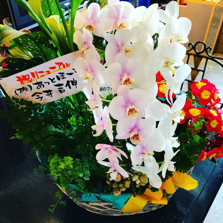 ご近所の「(株)あっとほーむ」様からも素敵なお祝いをいただきました!!