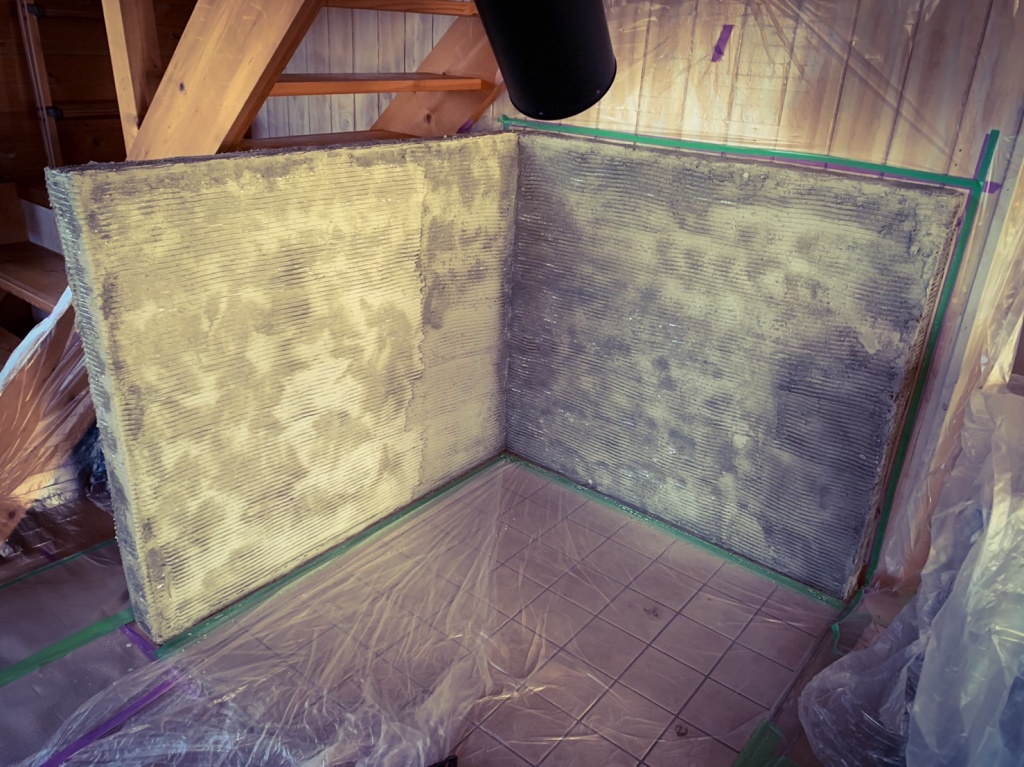 リノベではお馴染みの、カントリーベースのデザインコンクリート工法です。