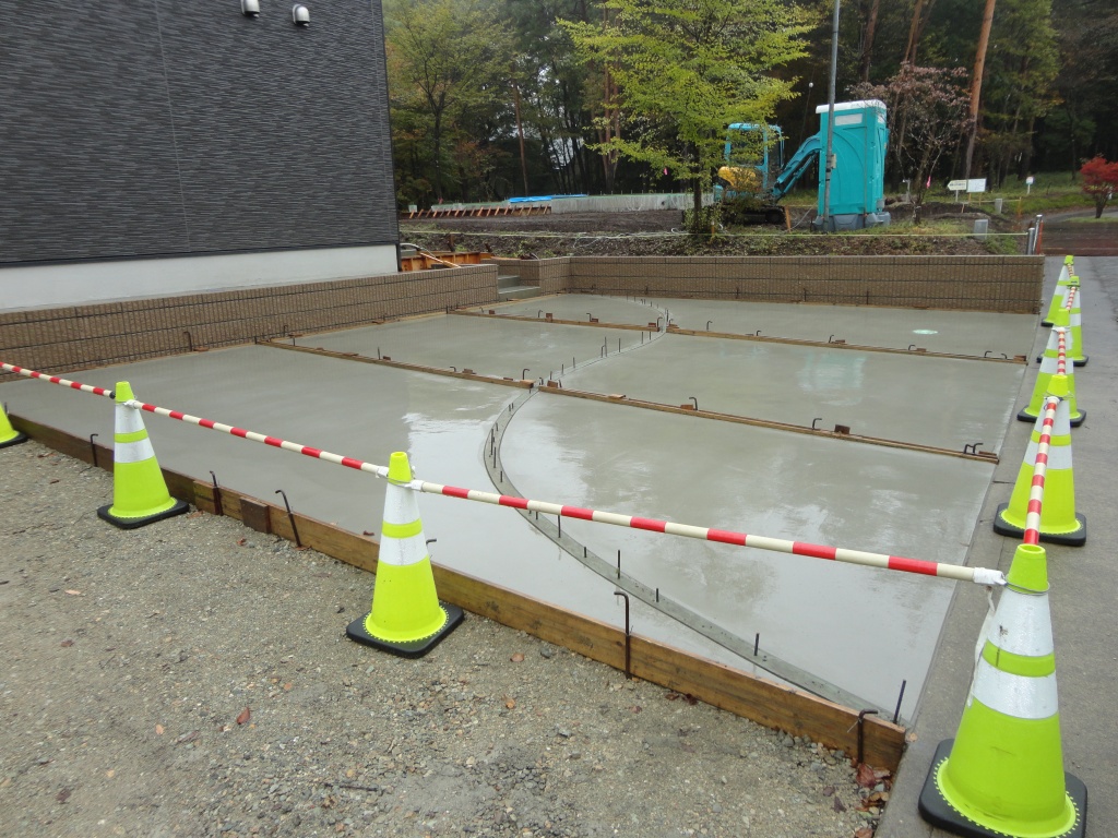 仕切りができたのでコンクリート工事を進めていきます。那須なので150mm厚で打設です。