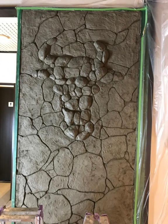 お店の入口と店内の壁と外の喫煙コーナーの壁、合計3カ所の造形をご紹介します!!