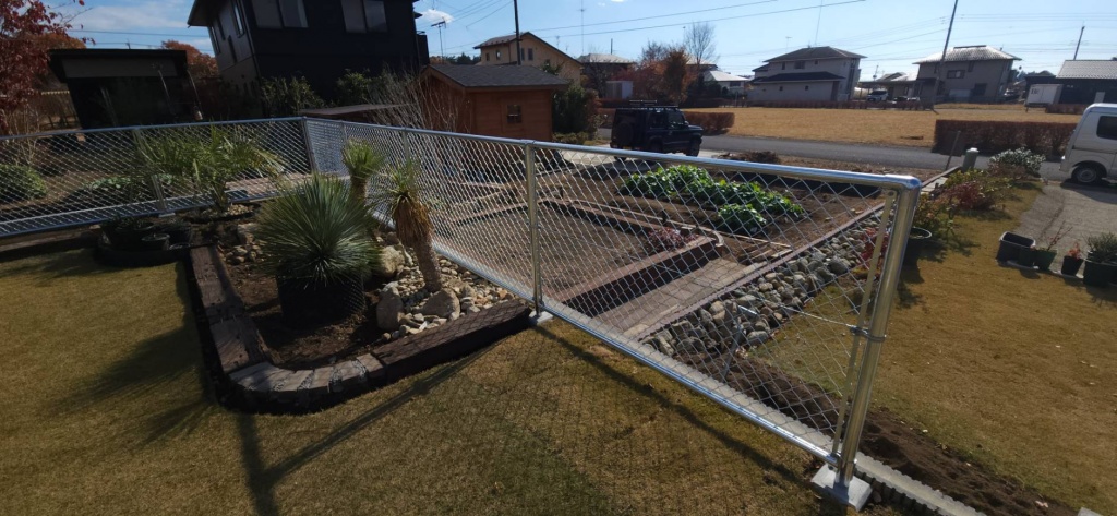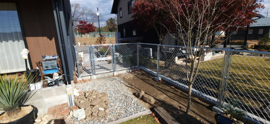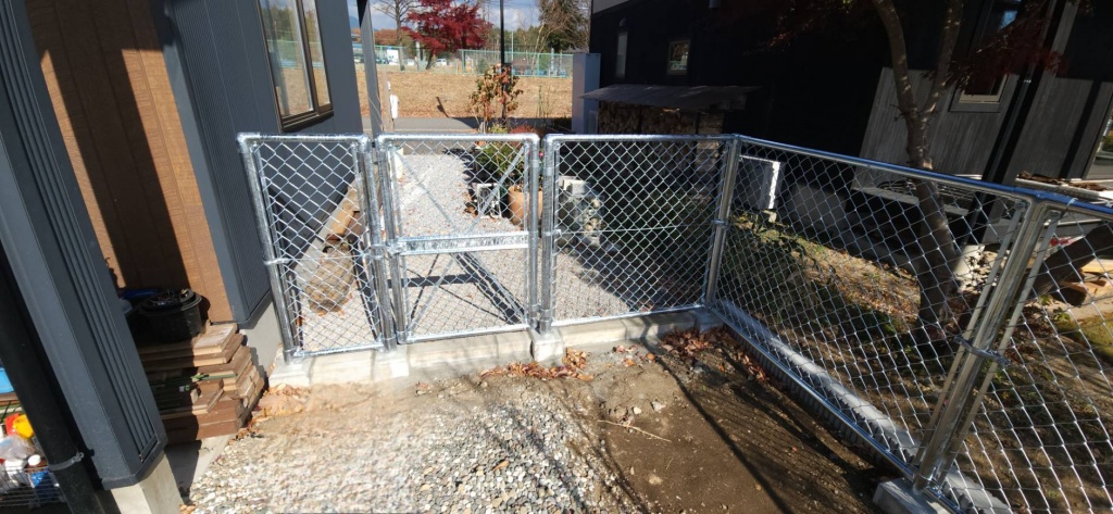 アメリカンフェンス・アイアンウッドフェンス工事 アメリカンフェンスは朝日スチールのPCフェンス、アイアンウッドフェンスはセランガンバツを使用して作成しました。
